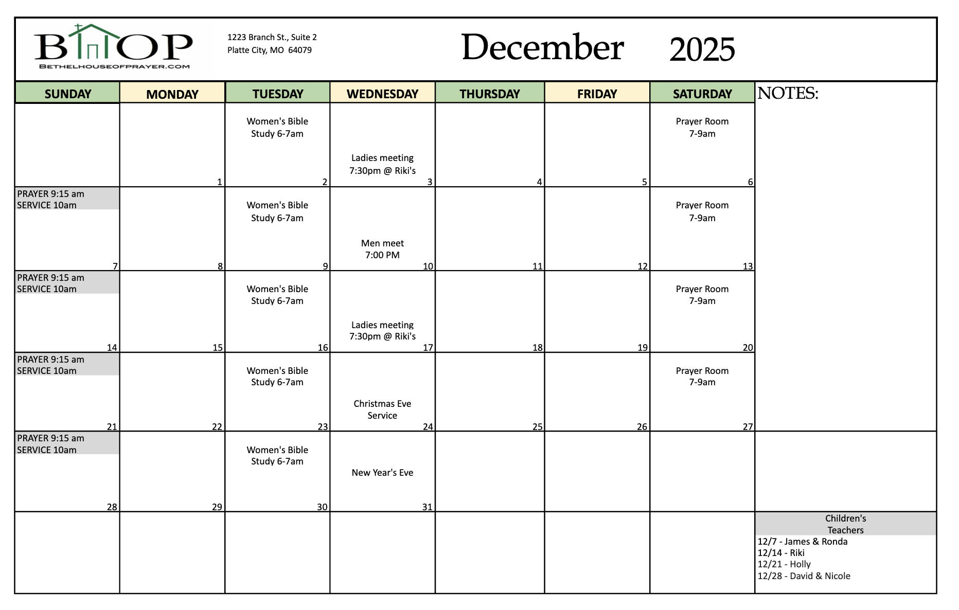 During our weekly prayer sessions, we are in the prayer room to first and foremost to minister to the Lord in corporate prayer & worship. We also pray for our community, our nation, and the other nations of the world. We want to be sensitive to the Spirit’s direction during this time so we are open to His leading and many times, take time to pray for personal needs when those are made known. We do not have child care during the prayer sessions.